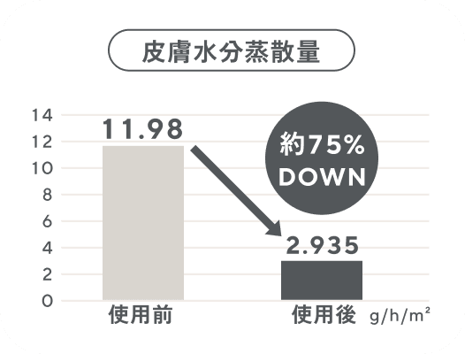 実際のモニター試験では、蒸発する水分量は75.3%低減という結果に。皮膚バリアが整い潤った皮膚によって、感染しにくく免疫力の高い状態をつくります。